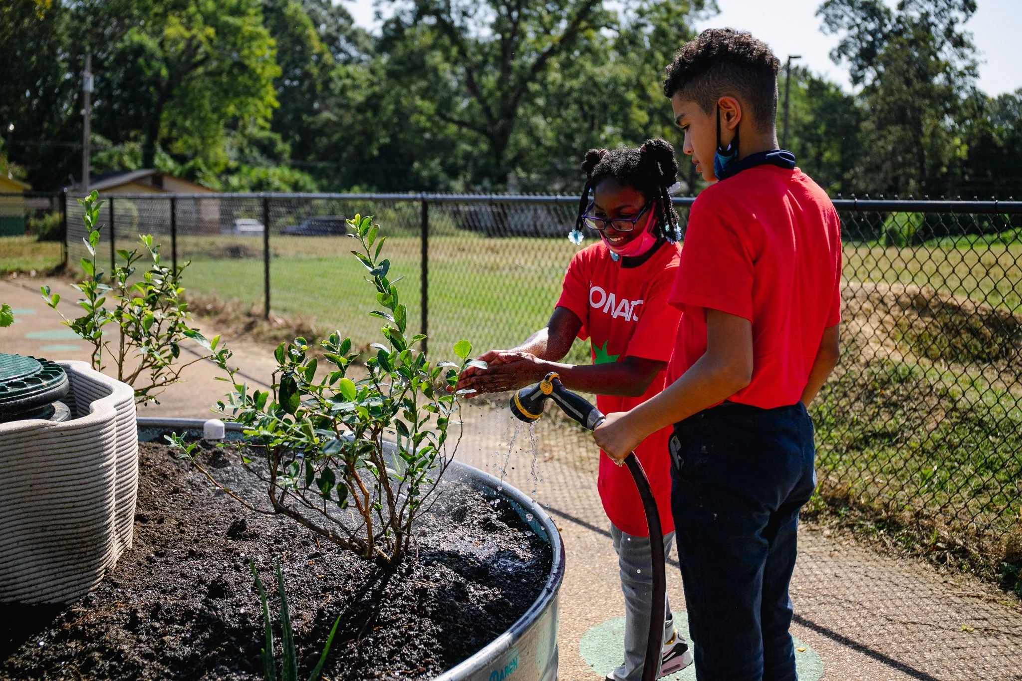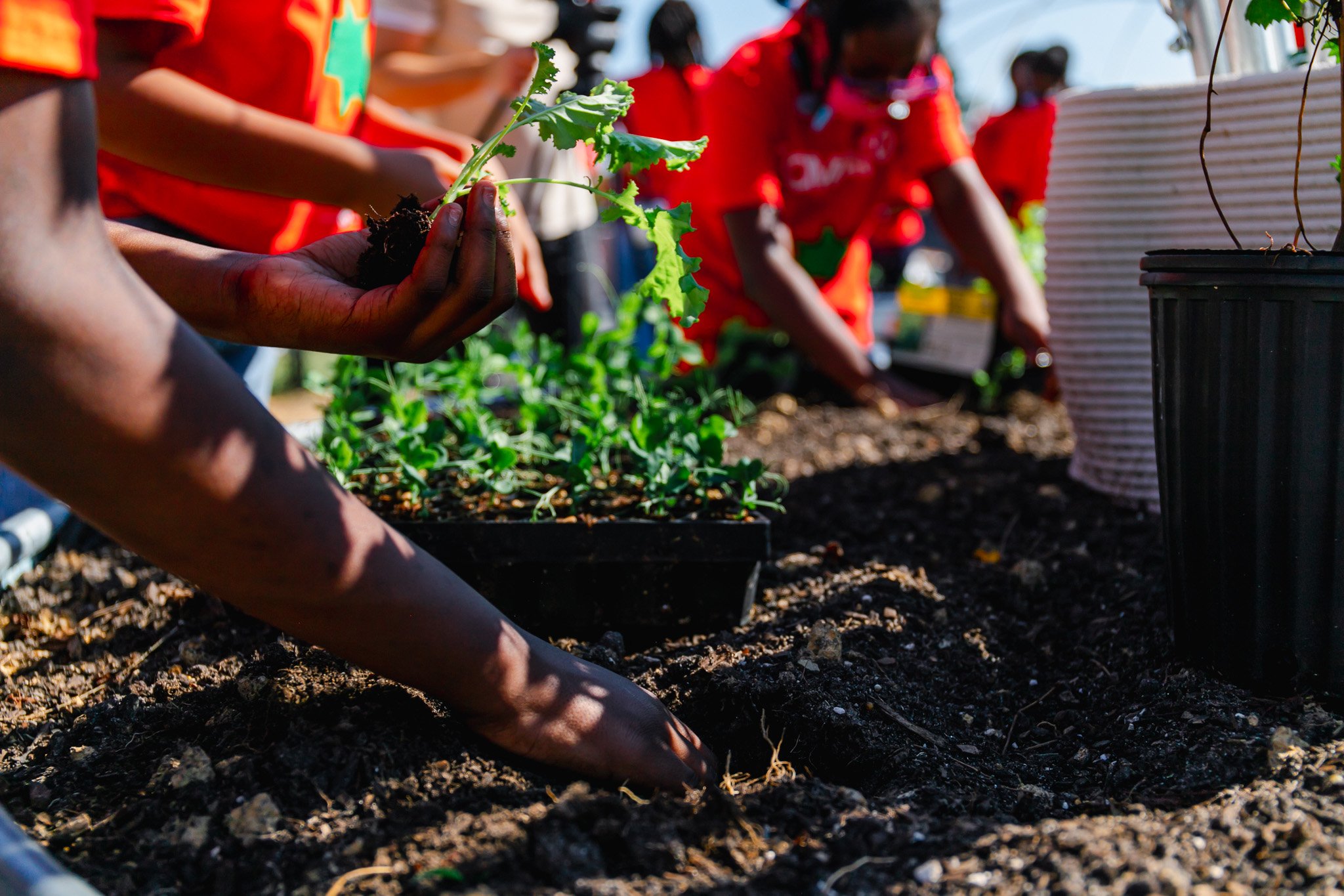 The garden was officially opened through a community planting ceremony where students helped plant trees and vegetables alongside project partners. These early experiences introduce young people to gardening, stewardship, and environmental awareness while reinforcing connections between food, health, and place. Beyond student use, the space is designed to function as a flexible outdoor education area for teachers, supporting curriculum-based learning across subjects.