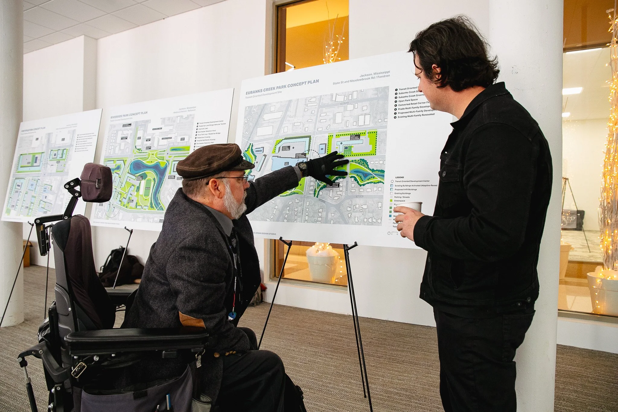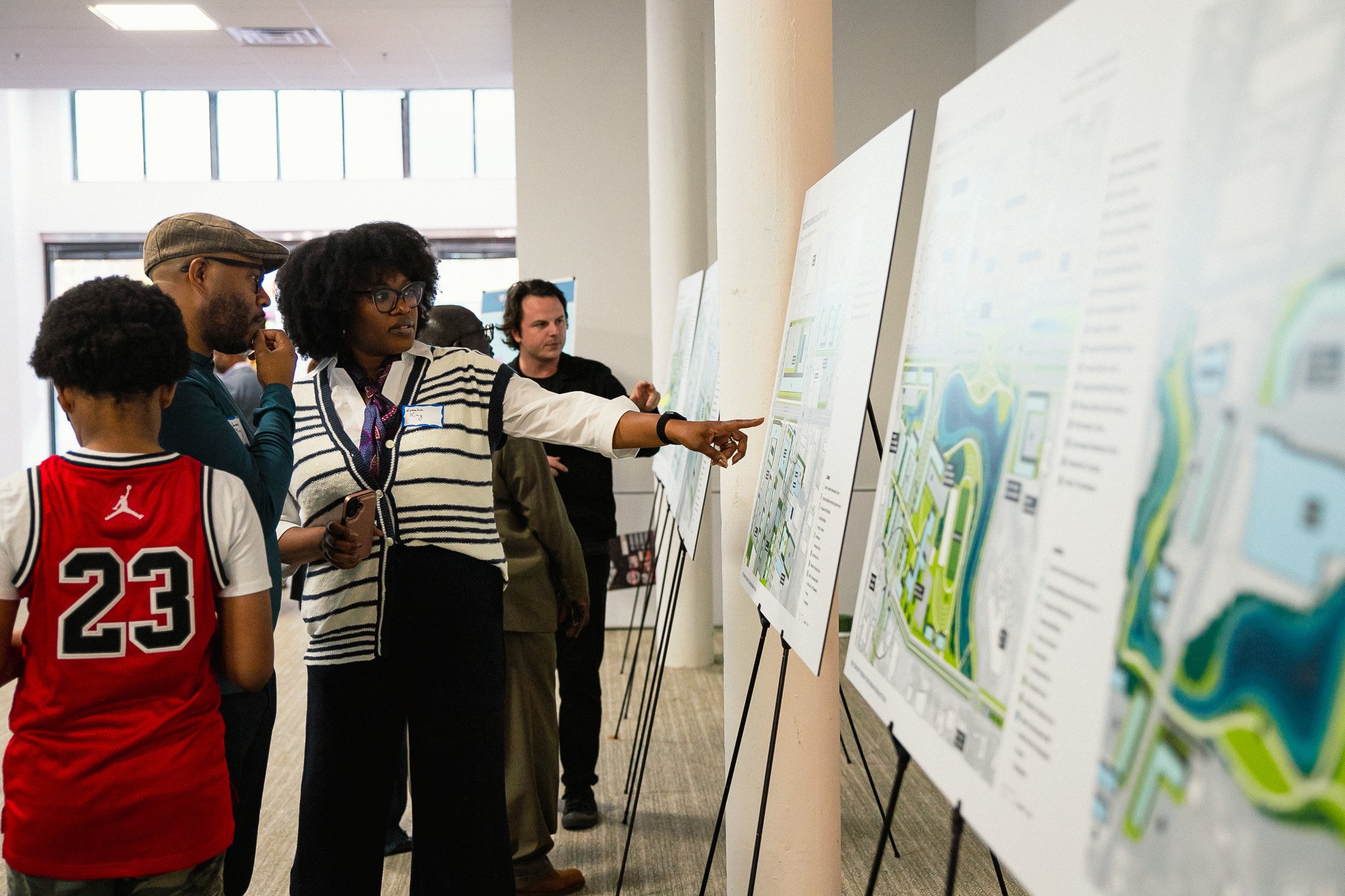 In partnership with the design team at Perkins&Will, TREE hosted community engagement sessions on Capitol Street in Downtown Jackson. The gallery-style setup featured master planning concepts for ONELINE Corridor sites, creating space for residents to engage directly with the design team and share feedback on each location.
